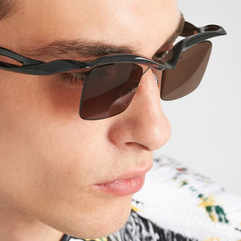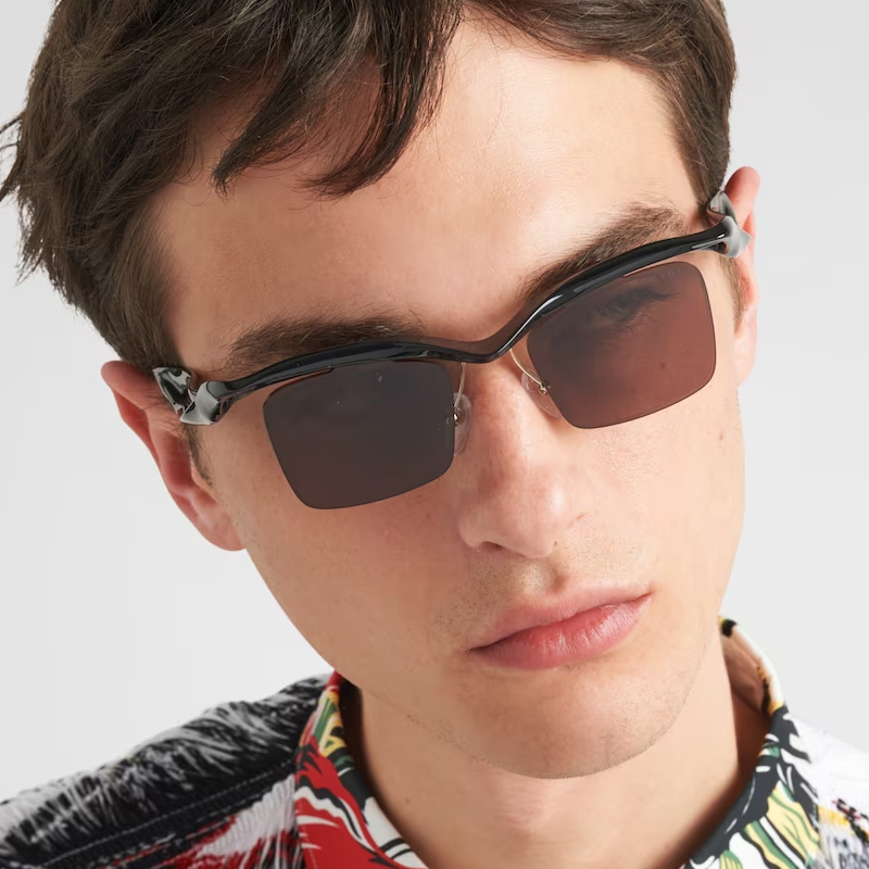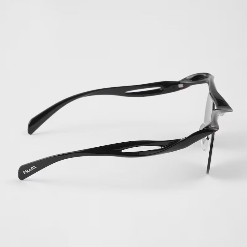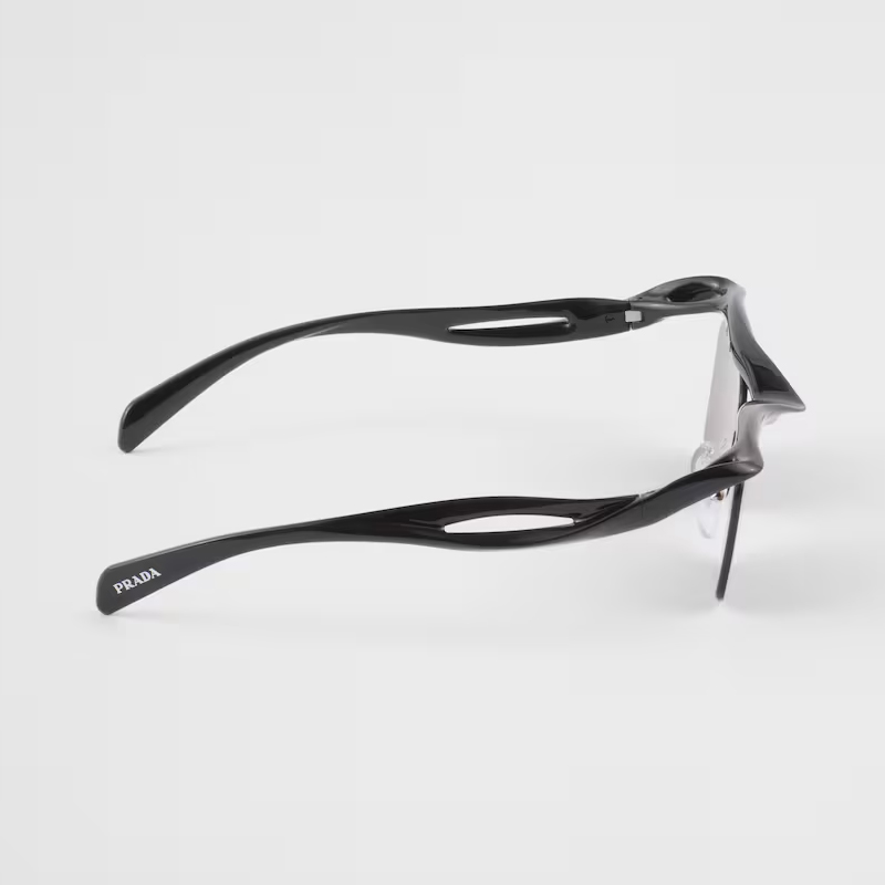 Os óculos Prada Morph Masculino possuem design inovador, com meio aro e curvas marcantes. Leves e ergonômicos, são perfeitos para homens que buscam inovação sem abrir mão do estilo.